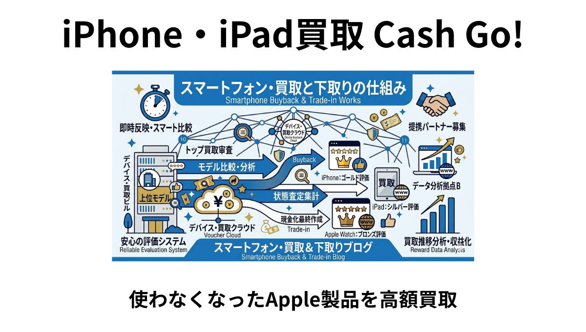 そんな方におすすめなのが、iPhone・iPad買取専門サービス「Cash Go!」です。この記事では、Cash Go!の特徴・評判・買取の流れを徹底解説します。