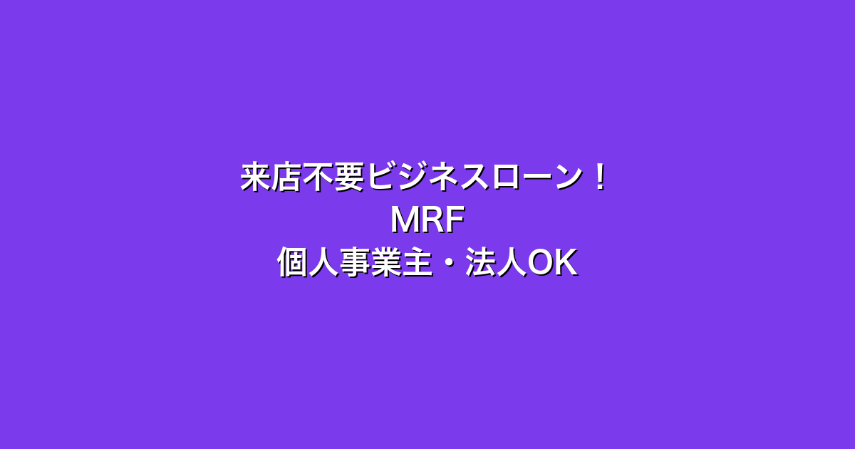 そんな個人事業主・中小企業にぴったりなのが、来店不要のビジネスローン「MRF(エムアールエフ)」です。