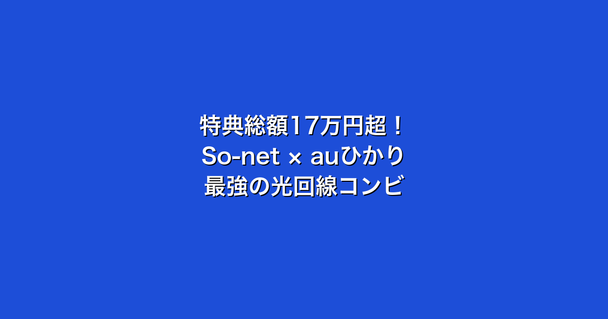 So-net × auひかりは特典総額17万円超・独自回線高速・スマートバリューの最強コンビです。