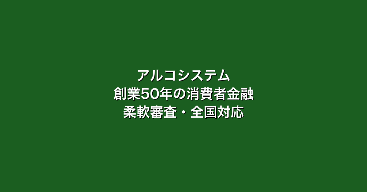 アルコシステムは50年以上の実績を持つ正規の消費者金融です。柔軟な審査基準で、大手で断られた方にも融資の可能性があります。