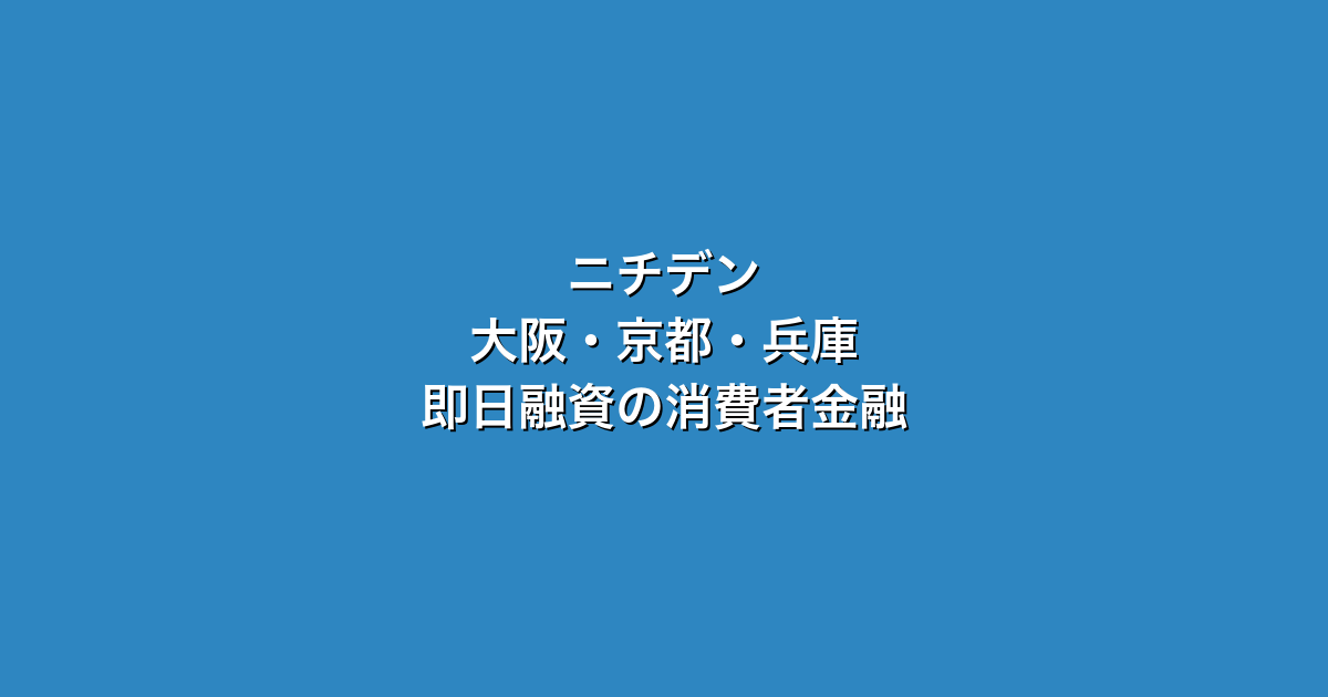 ニチデンは大阪・京都・兵庫の関西エリアに強い正規消費者金融です。フリーローンから事業者ローンまで幅広く対応しており、地域密着のサービスが魅力です。