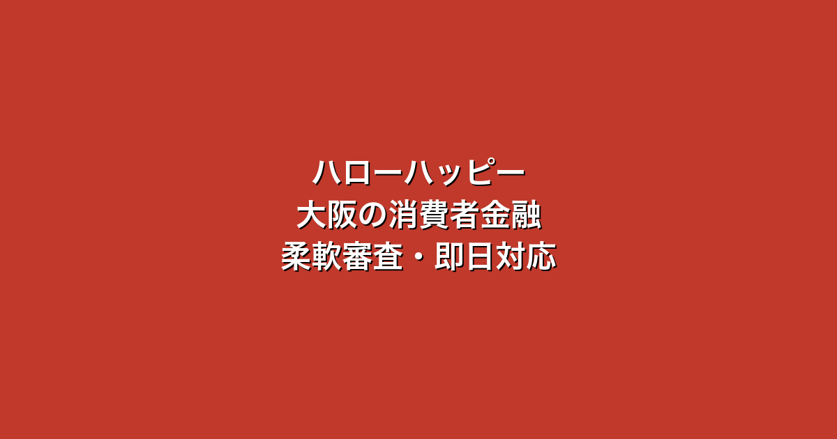 ハローハッピーは大阪の正規消費者金融で、柔軟な審査と親切な対応が特徴です。お金に困った時に頼れるパートナーとして、選択肢の一つに入れてみてください。