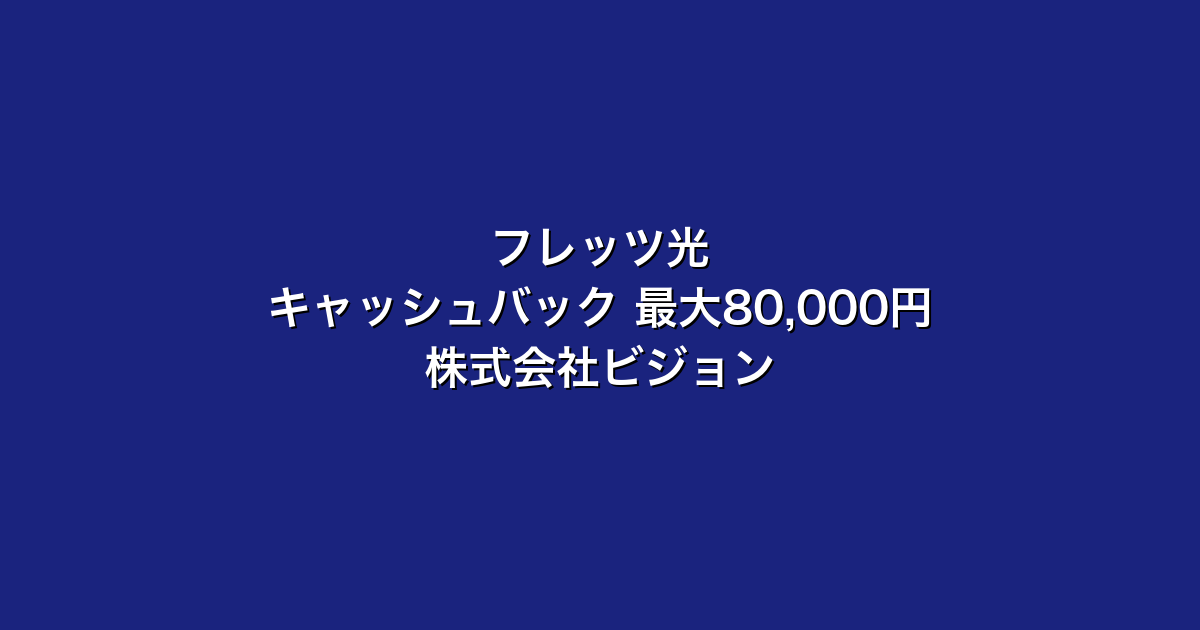 フレッツ光はNTT東日本・NTT西日本が提供する光回線サービスです。株式会社ビジョンを経由して申し込むと、最大80,000円のキャッシュバックが受けられるキャンペーンを実施しています。