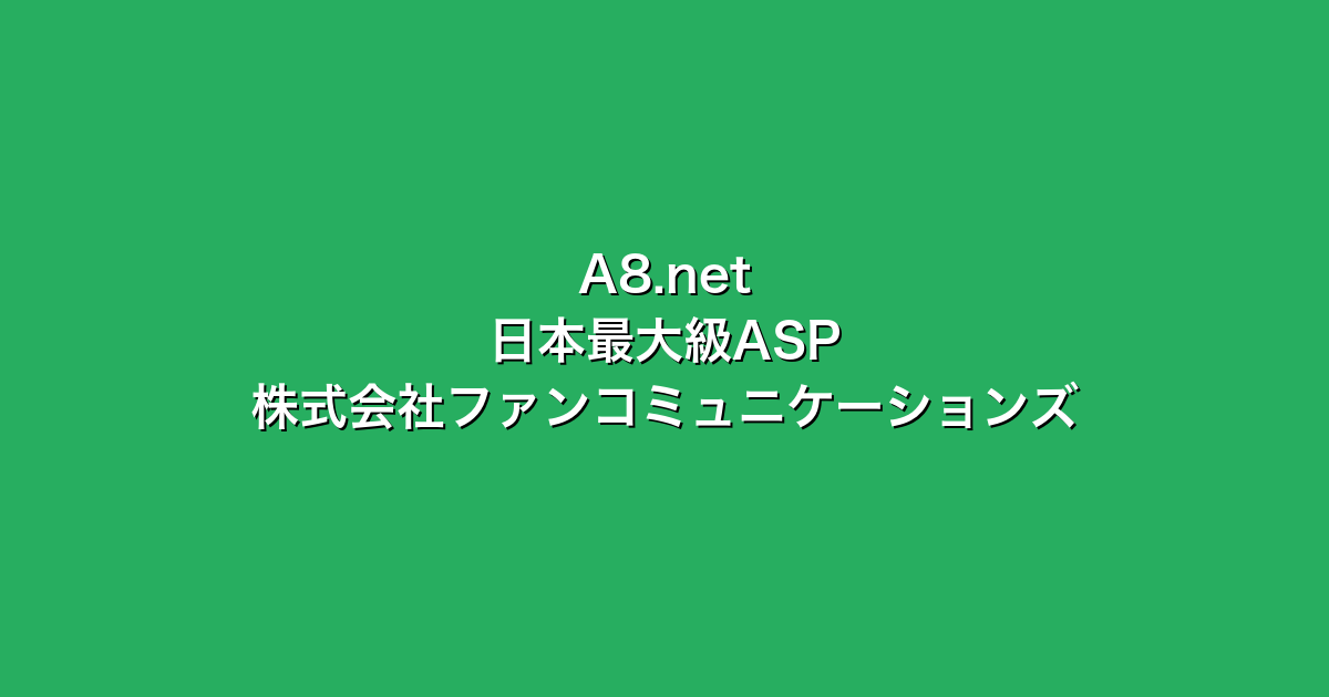 A8.net(エーハチネット)は、株式会社ファンコミュニケーションズが運営する日本最大級のアフィリエイトサービス(ASP)です。ブログやWebサイトを持っている方が広告を掲載して収益を得られるサービスです。
