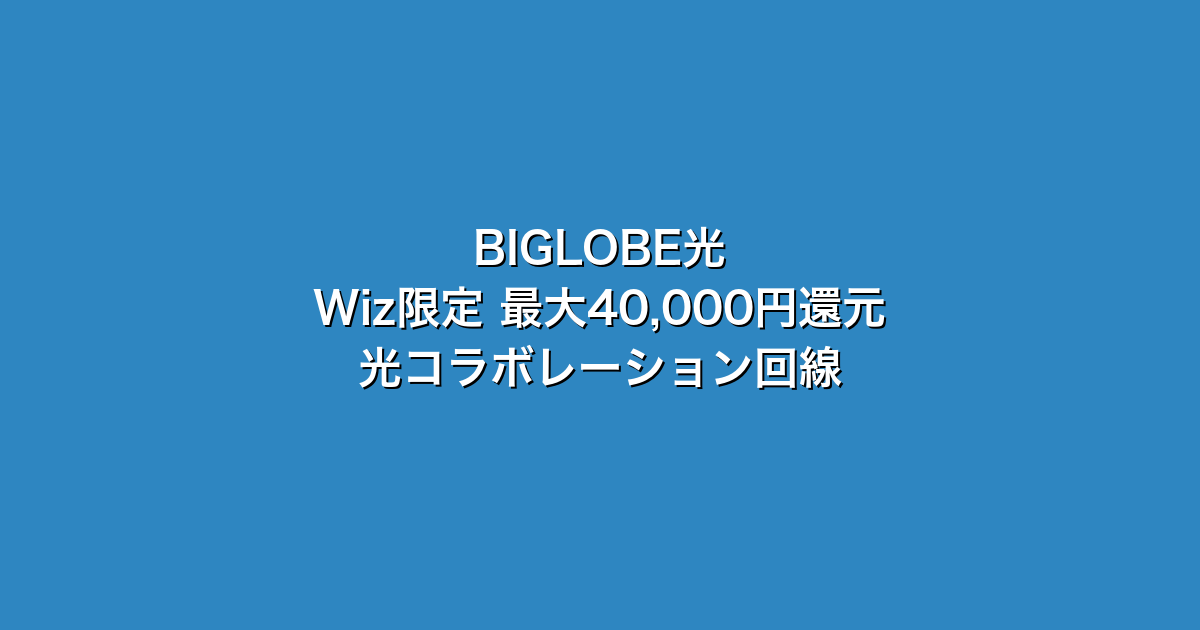 BIGLOBE光は、KDDIグループのビッグローブ株式会社が提供する光回線サービスです。正規代理店の株式会社Wizから申し込むと、最大40,000円の還元キャンペーンが利用できます。