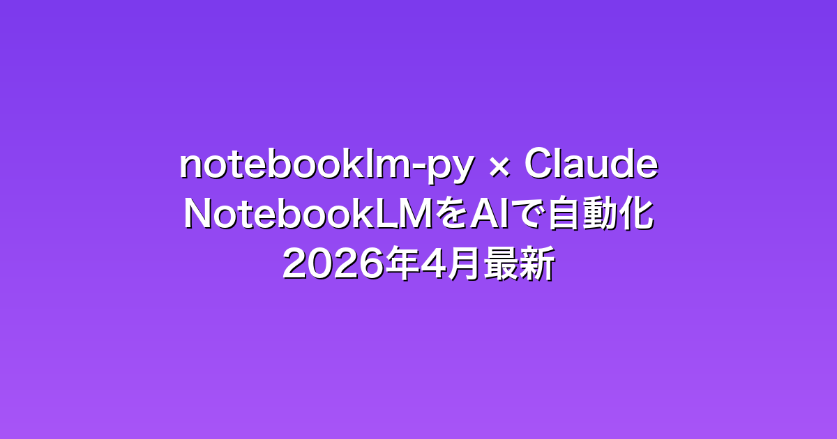 「NotebookLMは便利だけど、毎回ブラウザでポチポチ操作するのが正直めんどくさい…」――そんな人の間で、2026年に入ってからX(旧Twitter)で一気に話題になっているのが notebooklm-py という Python ライブラリです。さらにこれを Claude Code(Anthropic 公式の AI コーディング CLI)と組み合わせると、NotebookLM を“自然言語で丸ごと自動操縦”できるようになります。
