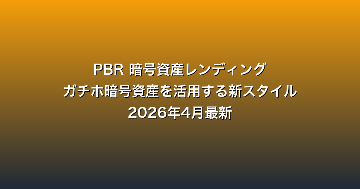【2026年最新】PBR暗号資産レンディング徹底レビュー|ガチホ中の暗号資産を活用する新スタイル