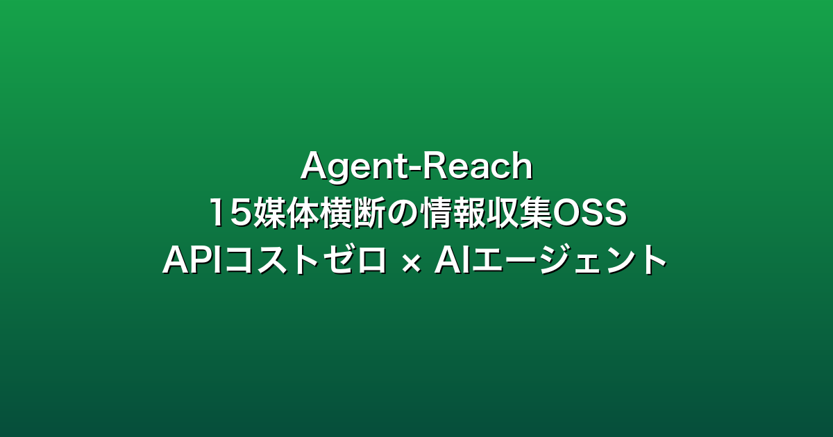 エージェント時代の差は、モデルそのものよりも「モデルに何を食わせるか」で開きます。Agent-Reach のような情報収集 OSS を 1 つ手元に置いておくと、自分のエージェントに届く世界の広さが変わります。