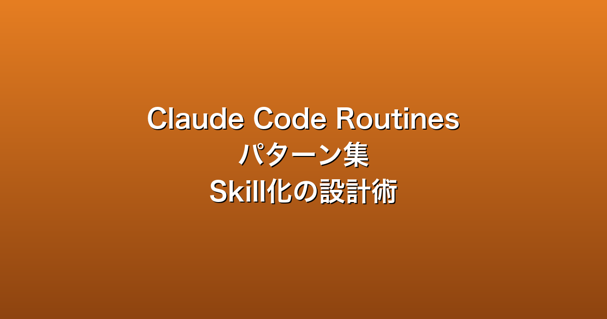 Claude Code Routines パターン集|定型タスクをSkill化する設計術【2026年】