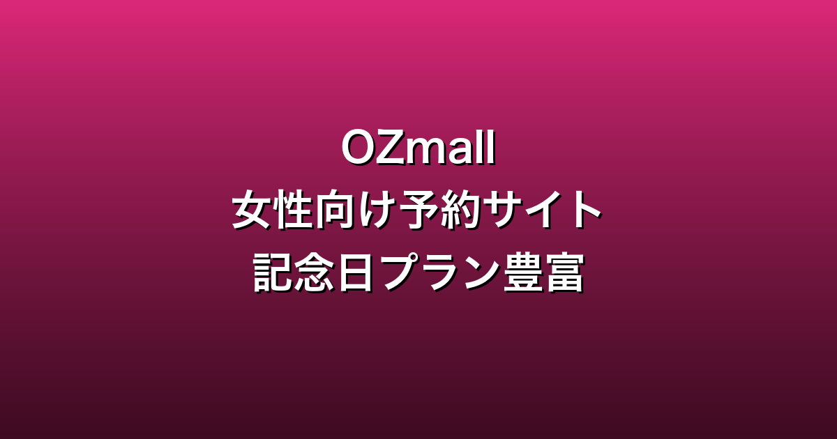 OZmall(ozmall.co.jp)は、女性向けライフスタイルメディア「OZ」が運営する、ホテル・レストラン・ビューティーサロンなどの予約サイトです。週末ステイ・記念日ディナー・誕生日プランなど特別な日の体験予約に強みがあります。