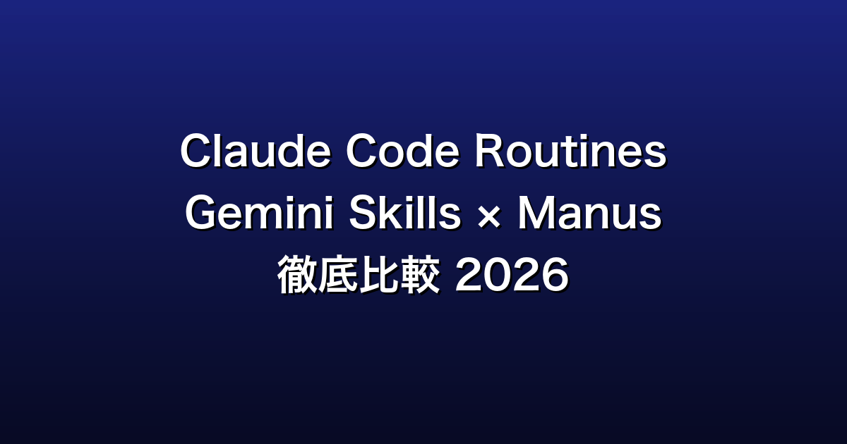 2026年、AIの「自動実行」がキーワードになっています。AnthropicのClaude Code Routines、GoogleのGemini Skills、そして自律型AIエージェントManus。どれも「AIが自律的にタスクをこなす」方向を目指していますが、アプローチや得意領域はそれぞれ異なります。