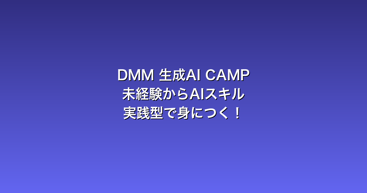 AIスキルを身につけたいならDMM 生成AI CAMP。DMMグループが運営する生成AI特化のオンラインスクールです。