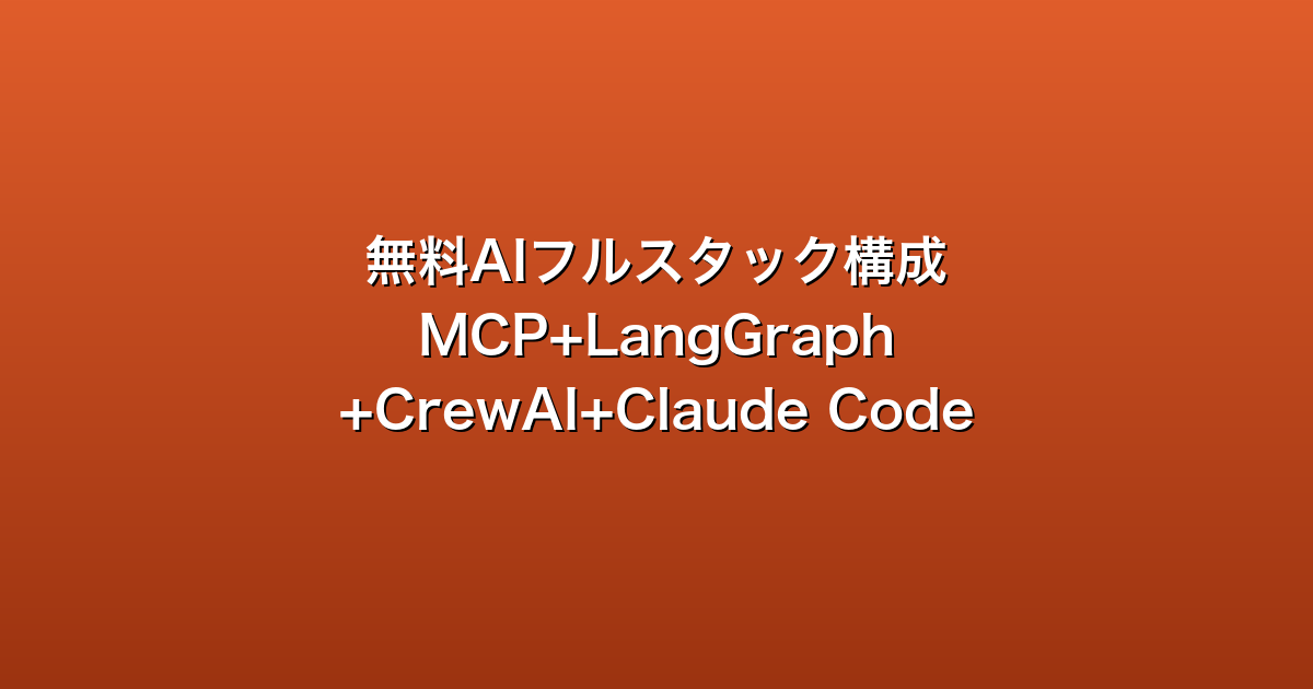 - MCP・LangGraph・CrewAI・Claude Code CLIを組み合わせれば、無料枠の範囲でAIエージェントのフルスタック構成を体験できる