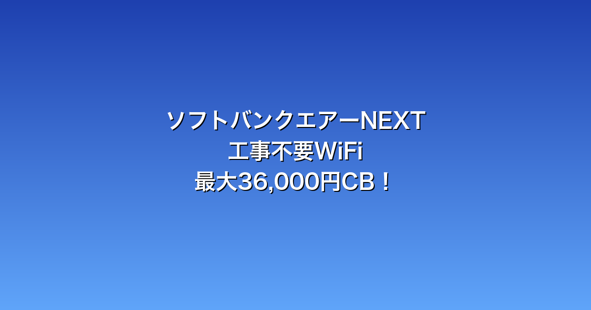 【2026年最新】ソフトバンクエアーNEXTの特徴・キャッシュバック情報|工事不要WiFi