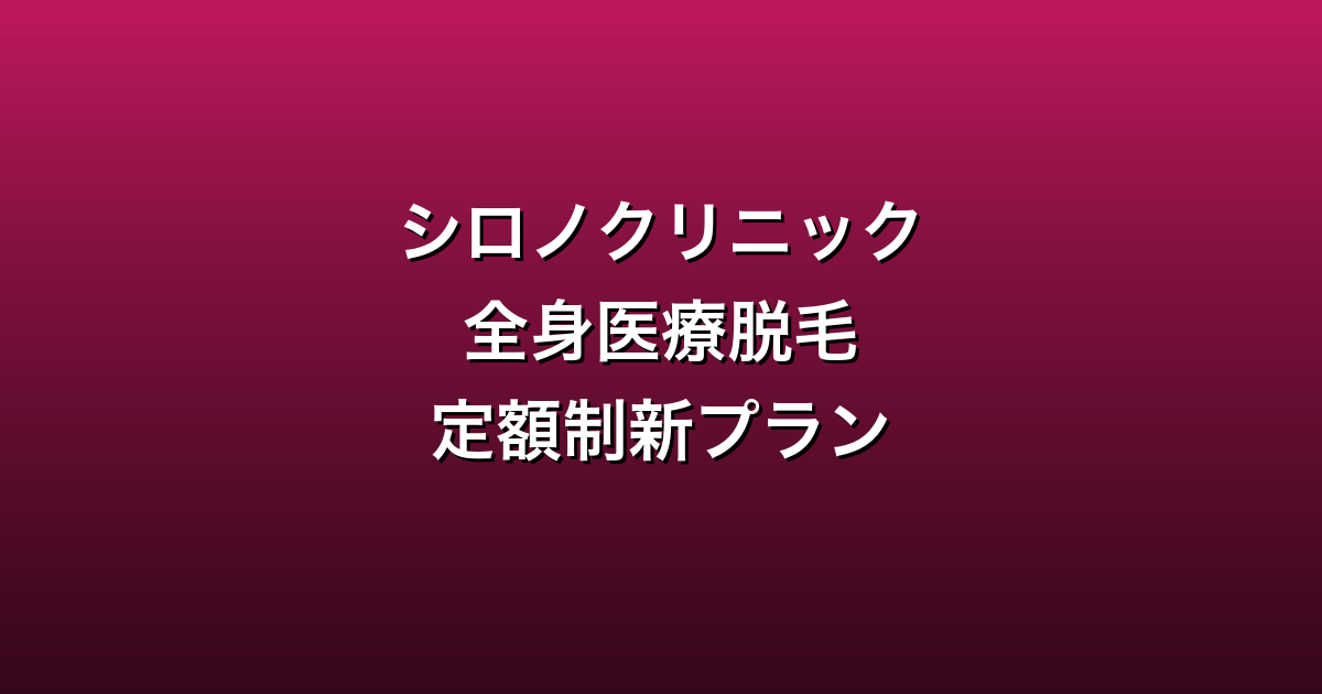 「全身脱毛したいけど、トータル費用が読めない」「サロン脱毛は効果が物足りない」「医療脱毛は高そう」…そんな悩みを抱える方に新しい選択肢を提供するのがシロノクリニックの全身医療脱毛・定額制プランです。