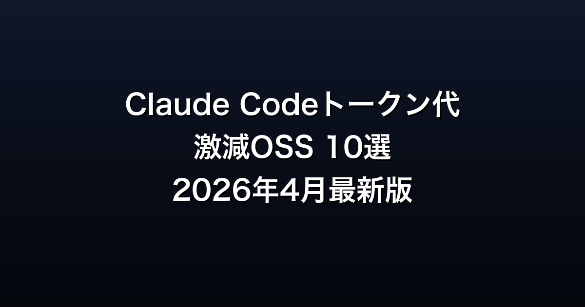 本記事では、これらの「トークン爆減OSS」を10個ピックアップ、どれが効くのか・どれを最初に入れるべきか・実測でどのくらい削減できるのかを、2026年4月最新版でまとめました。Claude Code Maxプラン($200/月)に課金する前に、まずは無料OSSで最大化を試してみる価値は十分あります。